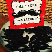 I then began to imagine 20 children painting in my house so I had to take some precautionary measures with the planning for my house and the kiddos. I ordered aprons for all the guests and personalized them for the party with their name and a Paris skyline. They were a big hit and they kept the paint off their clothes. I also added a beret and mustache selection so that our friends could really express their inner artist!